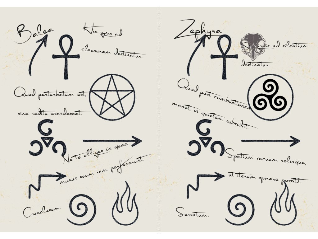 Součástí setu je rituální list – krátký text ze světa Manuse.