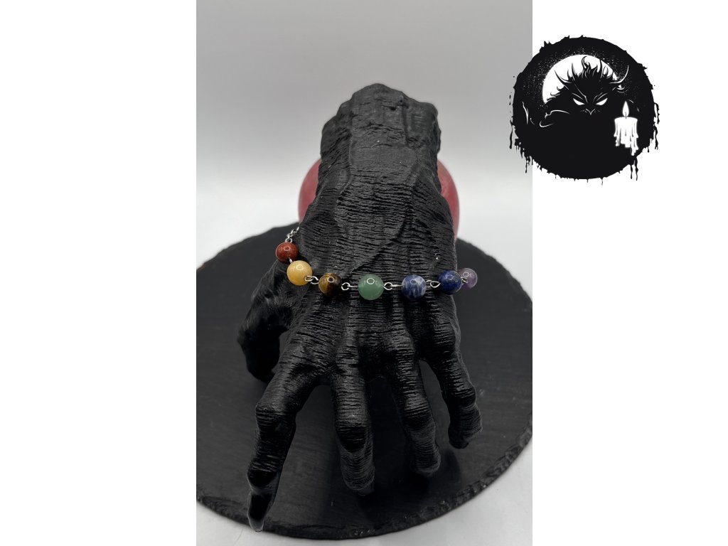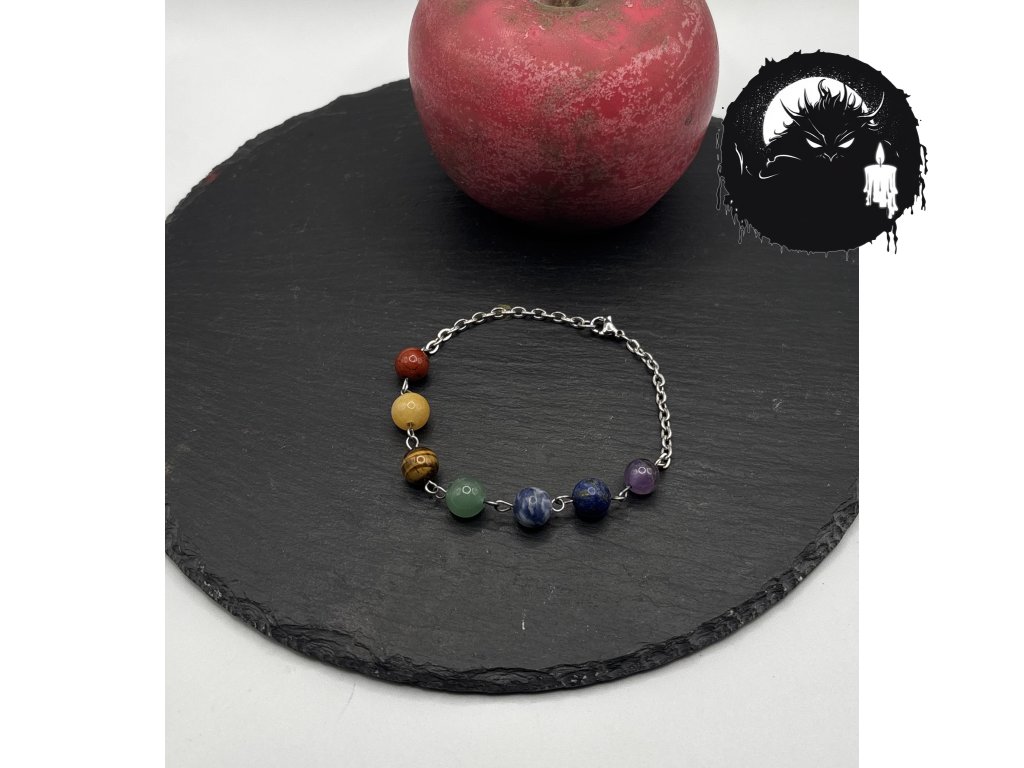 Jemný, ale silný. Tento čakrový náramek spojuje sedm přírodních minerálů v decentní řadě, doplněné o stříbrný kovový řetízek. Symbolika čaker je vyjádřena pomocí kamenů: