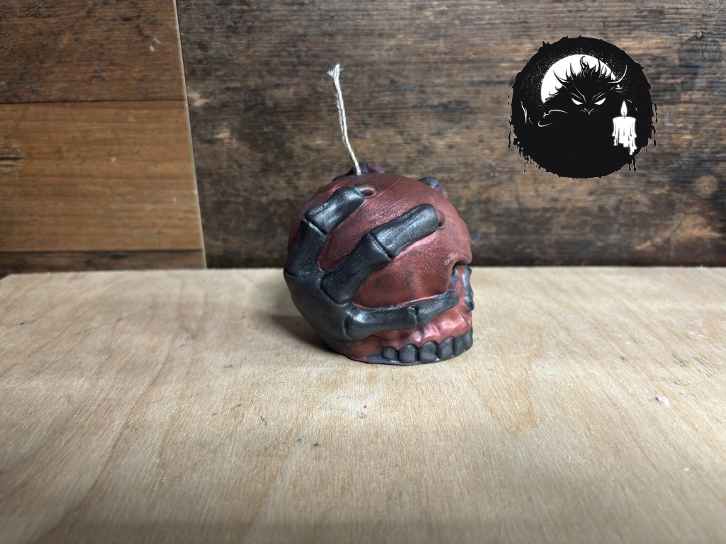 Ručně odlévaná svíčka ze 100% sójového vosku, barvená v temných odstínech rudé a černé. Ručně malovaná