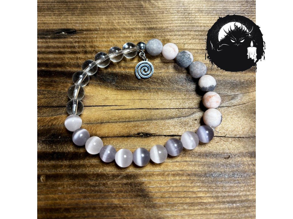 Kočičí oči pro vnitřní vizi a sebedůvěru, křišťál pro ochranu a energii, jaspis jako uzemnění.