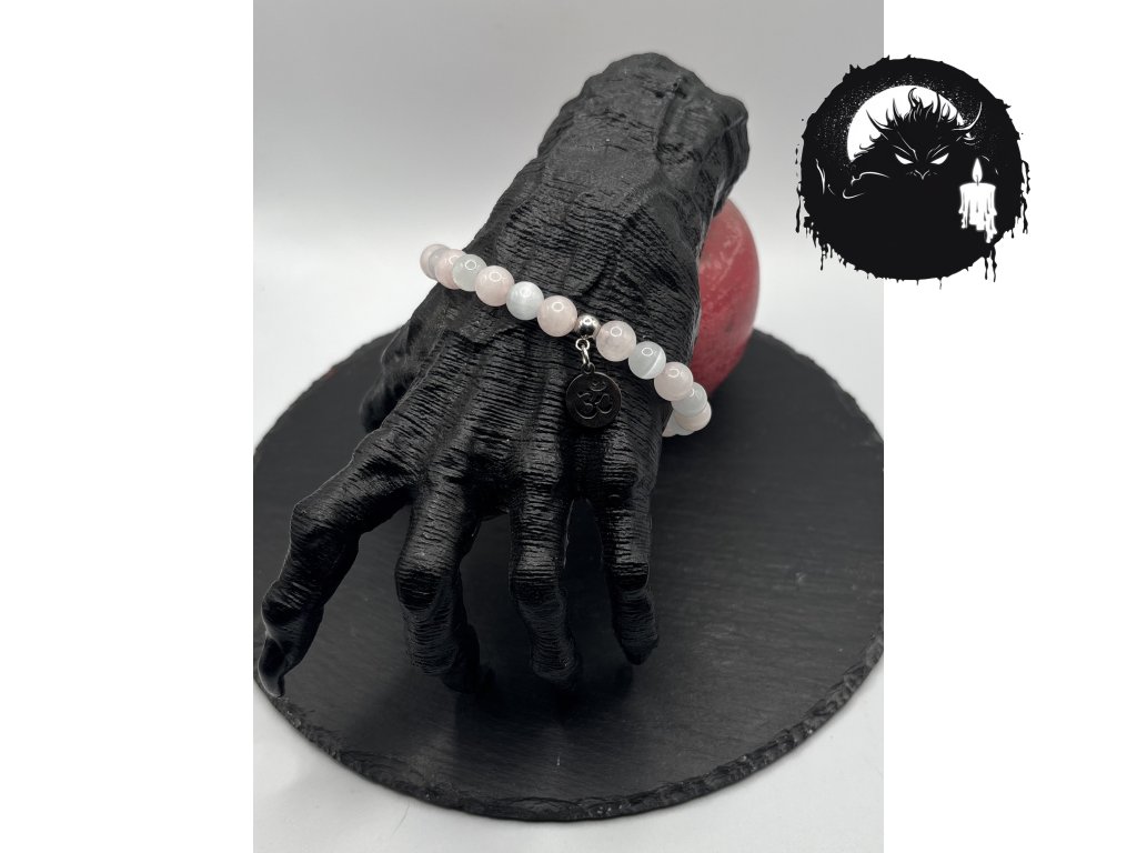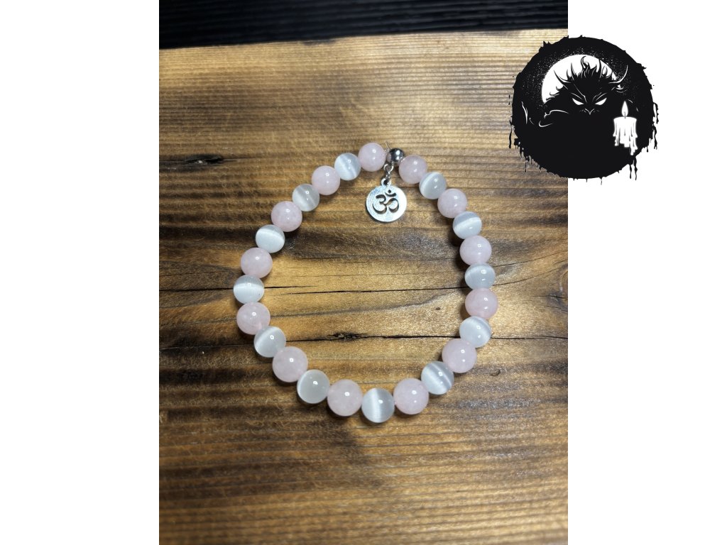 Selenit – kámen světla a očisty, který pomáhá uvolnit napětí a pročistit energetické pole. Růženín – kámen lásky, sebelaskavosti a jemného doteku.