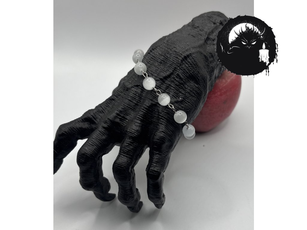 Minimalistický náramek z poloprůsvitného selenitu, který působí jako ochranný štít i světelný meč. Jemná, ale pevná kombinace kamenů a řetízku z nerezové oceli. Ideální pro chvíle, kdy potřebuješ klid, ale zároveň být připraven(a) bránit své hranice. Doporučeno pro duchy i živé.
