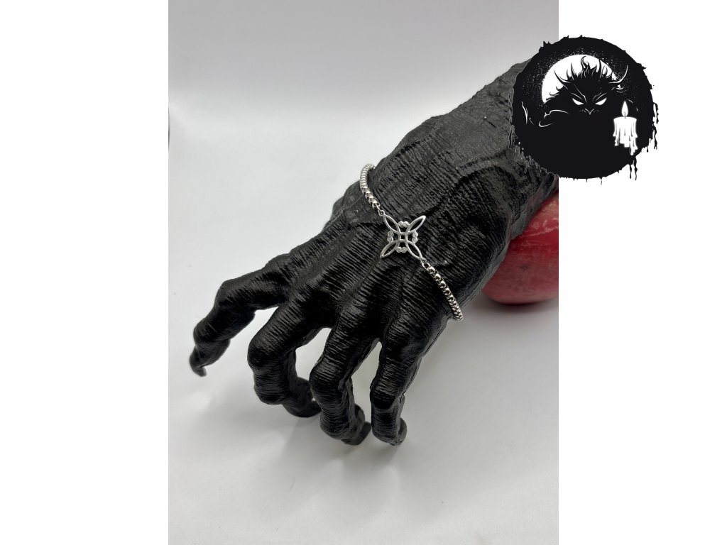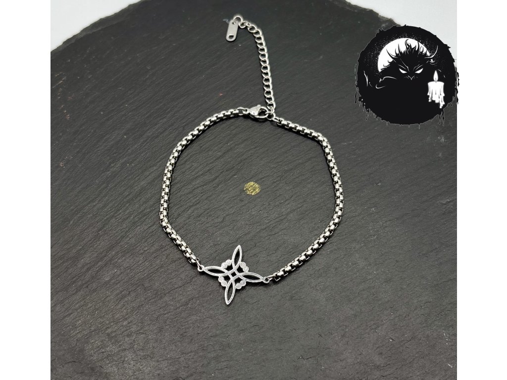 Jednoduchý, ale výrazný doplněk pro každou čarodějku, pohanku i milovnici tajemna. A nebo prostě pro tebe – protože víš, že i šperk může nést energii. Tento náramek je tvořen jemným, ale odolným řetízkem a výrazným středovým prvkem – keltským uzlem. Symbol, který je od pradávna spojen s cyklem života, nekonečností a magickou ochranou, je vyveden v elegantním, vzdušném stylu. Zapínání je klasické s možností prodloužení.
