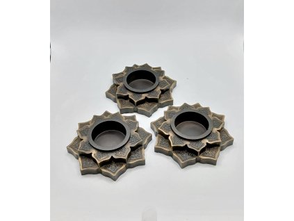 Svícny Mandala – tři kousky harmonie v kovovém hávu. Ručně malované, s jemnými mandalovými motivy, které rozzáří plamen čajové svíčky a přidají tvému rituálu špetku posvátného...