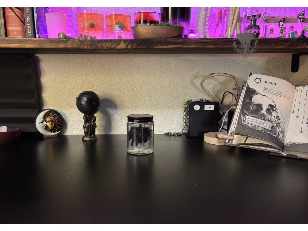 Temná myšlenka uzavřená do skla.