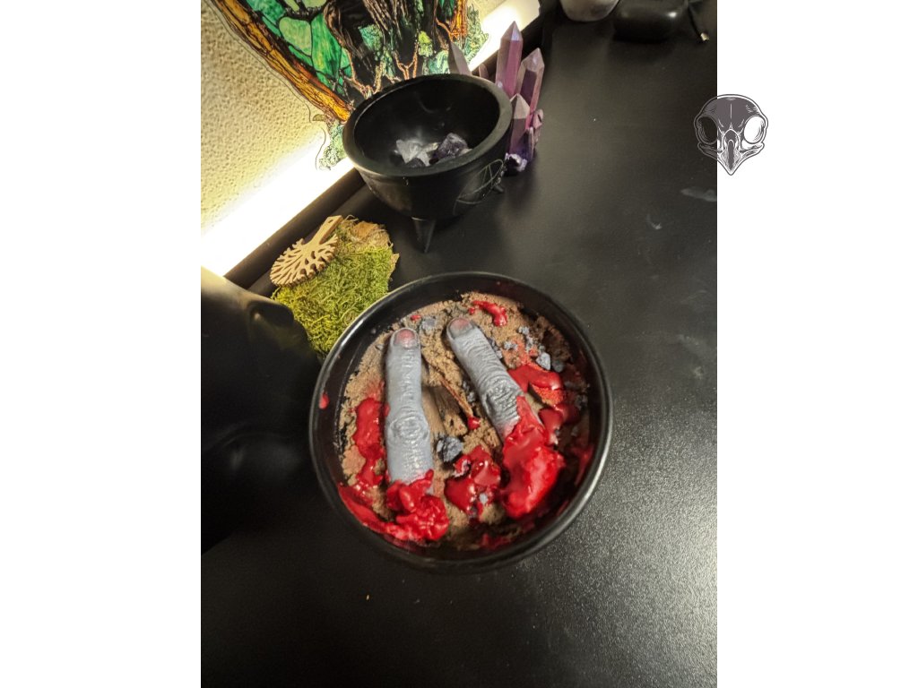 Dva oddělené prsty, čerstvě kontaminované směsí půdy a biologického materiálu.
